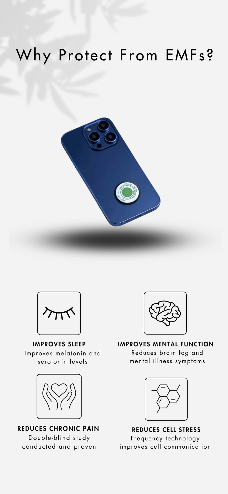 OliviaI purchased a vita chip last month just to test it out and honestly my sleep has improved a lot since putting it on my phone. I was a bit unsure it it was going to work but at this point I was willing to try anything to maintain better sleep. After a month of using it I have noticed the benefits and am going to buy some for my family as a holiday present! Thank you! :)